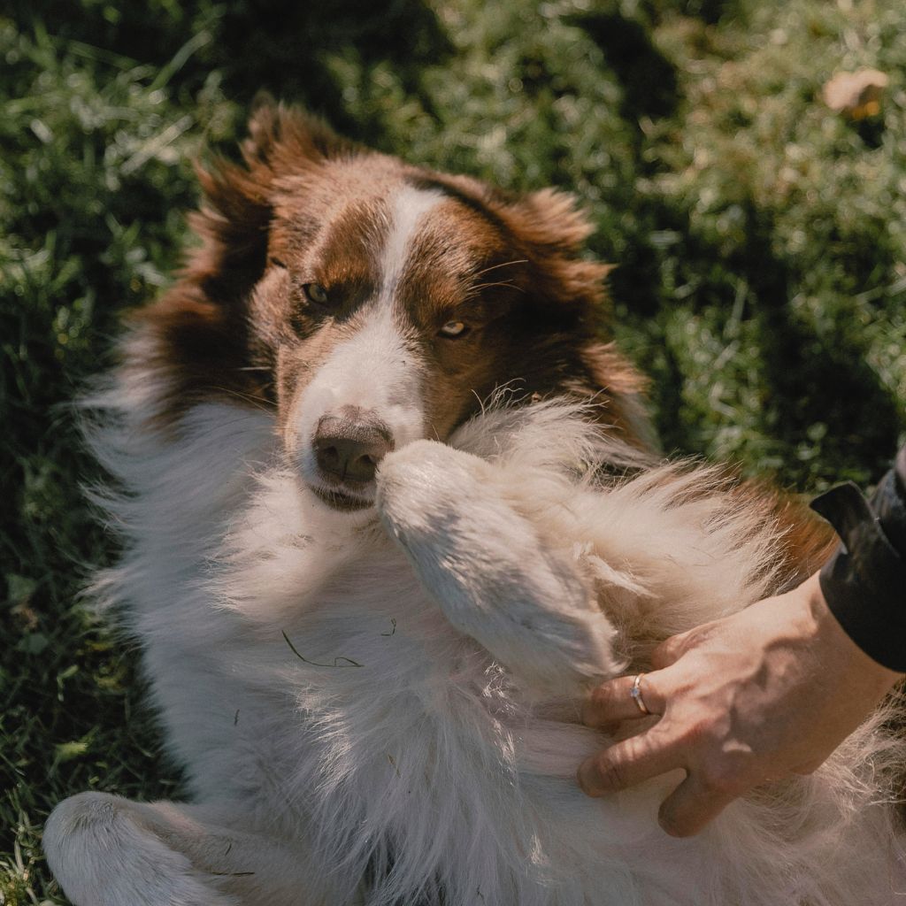 They didn't hesitate: they saw Dal, smiled, and changed course mid-stride. I couldn't resist either. Later, I lay down beside him in the grass and gave him a long, slow butt scratch. He leaned into it, as if I was doing him a favour. I'd just come out of a three-day conference. The air was cool. Dal was warm. It was the best I'd felt in days.